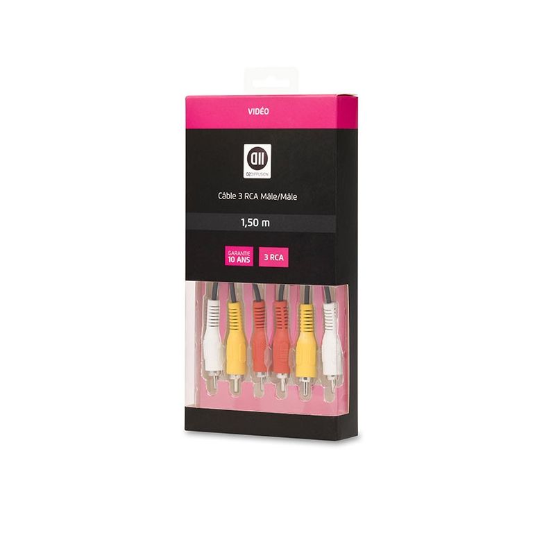 D2 Diffusion D23RCA3RCA150. Longueur de câble: 1,5 m, Connecteur 1: 3 x RCA, Connecteur 2: 3 x RCA. Quantité: 1 pièce(s)