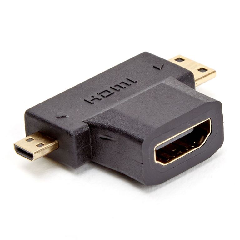 Adaptateur micro et mini HDMI mles/HDMI femelle D2 Diffusion - Fiches or - micro et mini HDMI mles vers HDMI femelle.
