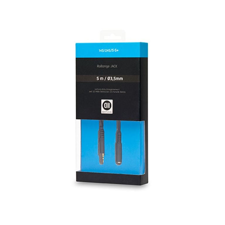 D2 Diffusion D2JKMF500. Connecteur 1: 3,5mm, Genre de connecteur 1: Mâle, Connecteur 2: 3,5mm, Genre de connecteur 2: Femelle, Contacts du connecteur de placage: Or, Longueur de câble: 5 m, Couleur du produit: Noir