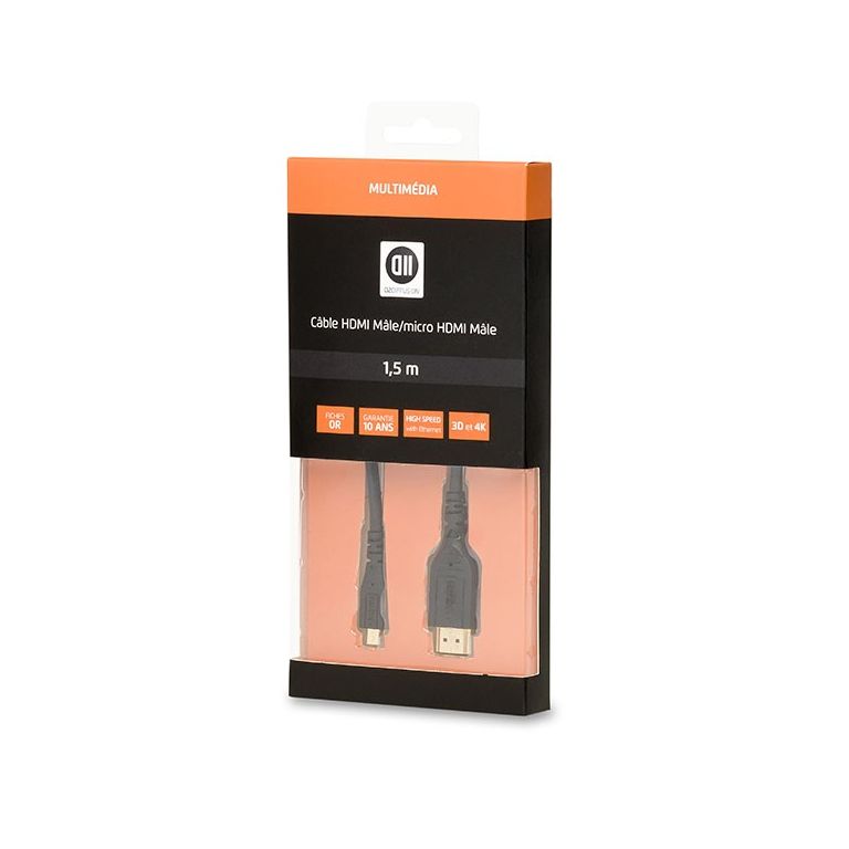 D2 Diffusion D2MICROHDMI150MU. Longueur de câble: 1,5 m, Connecteur 1: HDMI Type C (Mini), Genre de connecteur 1: Mâle, Connecteur 2: HDMI Type A (Standard), Genre de connecteur 2: Mâle, Contacts du connecteur de placage: Or, Version HDMI: 1.4, Compatibilité 3D, Couleur du produit: Noir
