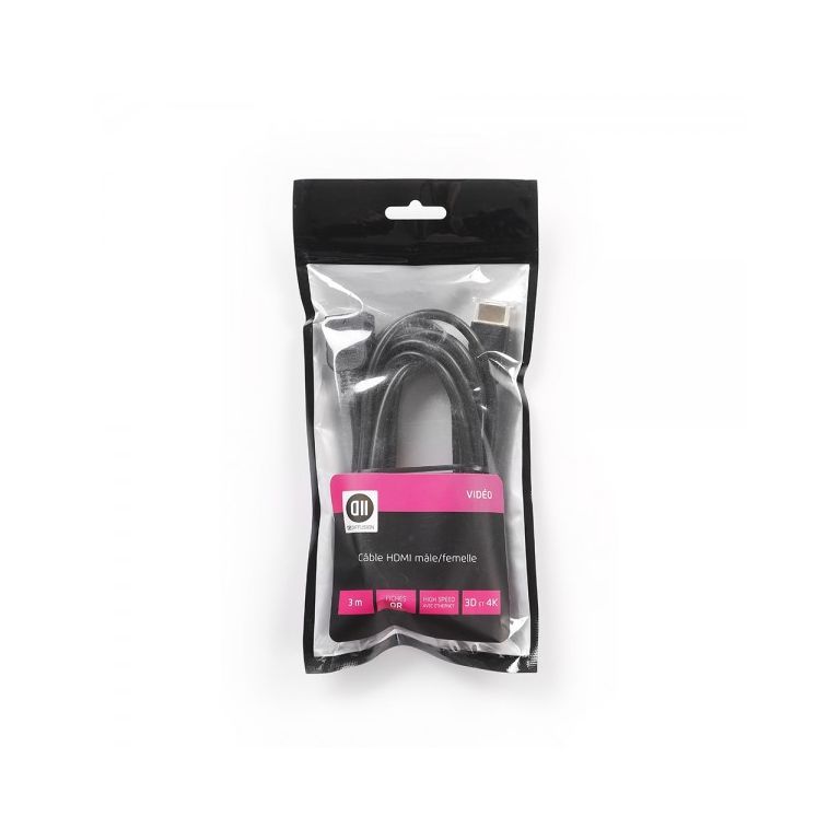 D2 Diffusion D2RALHDMI300SACH. Longueur de câble: 3 m, Connecteur 1: HDMI Type A (Standard), Genre de connecteur 1: Mâle, Connecteur 2: HDMI Type A (Standard), Genre de connecteur 2: Femelle, Contacts du connecteur de placage: Or, Couleur du produit: Noir