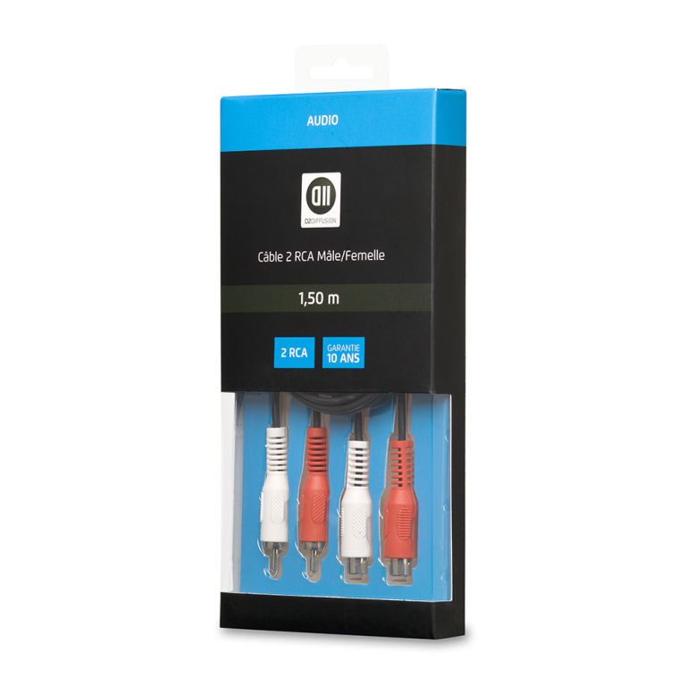 Câble 2 RCA mâle/femelle d’une longueur de 1,5 mètre de D2 Diffusion, idéal pour relier ou prolonger vos appareils audio équipés de connecteurs RCA, assurant une transmission sonore fiable et de qualité.