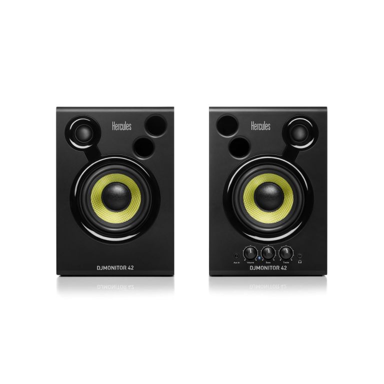 Hercules DJMonitor 42. Gamme de fréquence: 60 - 20000 Hz. Puissance évaluée de RMS: 40 W, Puissance de crête en sortie (PMPO): 80 W, Diamètre du woofer (impérial): 10,2 cm (4"). Couleur du produit: Noir, Matériau du boîtier/corps: Panneaux MDF, Voyants: Énergie. Largeur: 185 mm, Profondeur: 155 mm, Hauteur: 220 mm. Câbles inclus: Secteur
