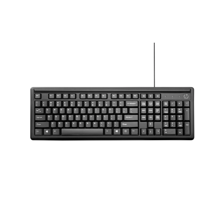 HP Clavier 100. Facteur de forme du clavier: Taille réelle (100 %). Style de clavier: Droit. Technologie de connectivité: Avec fil, Interface de l'appareil: USB, Utilisation recommandée: Maison. Couleur du produit: Noir