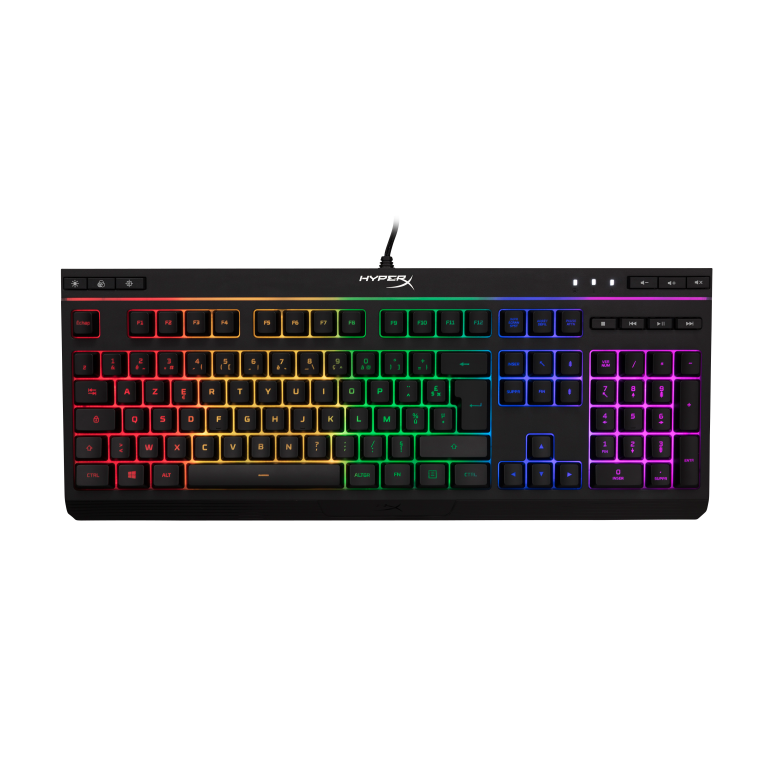 RGB core en alliage - Clavier de jeu (disposition FR). Facteur de forme du clavier: Taille réelle (100 %), Technologie de connectivité: Avec fil, Interface de l'appareil: USB, Interrupteur à clé de clavier: Clavier à membrane. Type de rétro: LED RGB. Longueur de câble: 1,8 m. Utilisation recommandée: Gaming. Couleur du produit: Noir