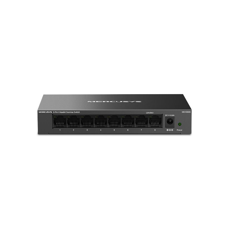 Mercusys MS108GS-M2. Type de port Ethernet RJ-45 de commutation de base: Gigabit Ethernet (10/100/1000), Quantité de ports Ethernet RJ-45 de commutation de base: 8. Standards réseau: IEEE 802.3, IEEE 802.3ab, IEEE 802.3u. Voltage d'entrée DC: 5 V. Grille de montage