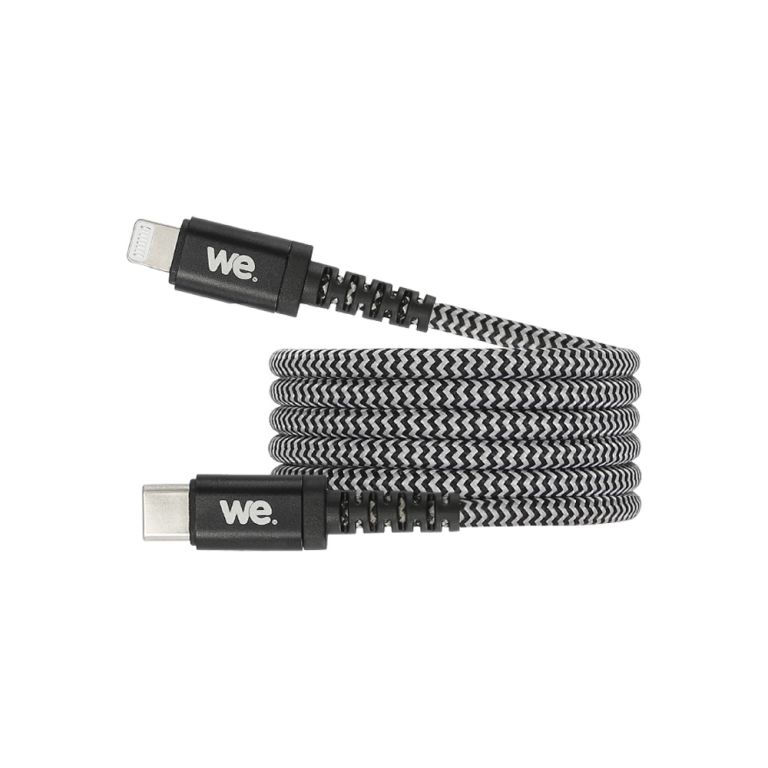 Le WEUSBLIGHTNY100N est un câble de recharge et synchronisation en nylon tressé noir et blanc avec connecteurs en métal robustes, d’une longueur pratique de 1 mètre. Conçu pour la charge rapide des iPhone (à partir de l’iPhone 8 et modèles ultérieurs), il permet de recharger jusqu’à 50 % de la batterie en 30 minutes, à condition d’être utilisé avec un adaptateur secteur USB-C de 18 W à 87 W (parmi les puissances compatibles : 18 W, 29 W, 30 W, 61 W ou 87 W).