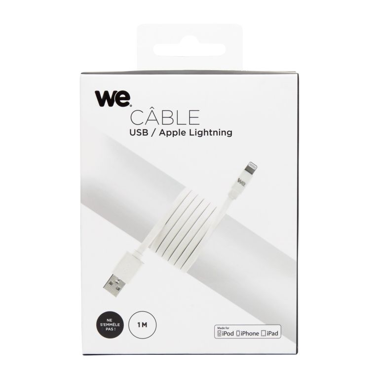 WE WEUSBLIGHTPLAT100BL. Couleur du produit: Blanc, Connecteur 1: USB A, Connecteur 2: Lightning